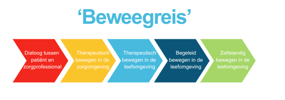 Doel is om in kaart brengen hoe de ‘beweegreis’ van bewegen in de zorg naar bewegen thuis eruit moet zien. De verwachting is dat meer patiënten hierdoor gaan en blijven bewegen. Dit draagt bij aan een betere gezondheid en kwaliteit van leven voor patiënten en lagere maatschappelijke (zorg)kosten.
